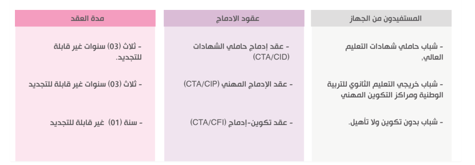 أنواع عقود ماقبل التشغيل عقود الإدماج المهني في الجزائر