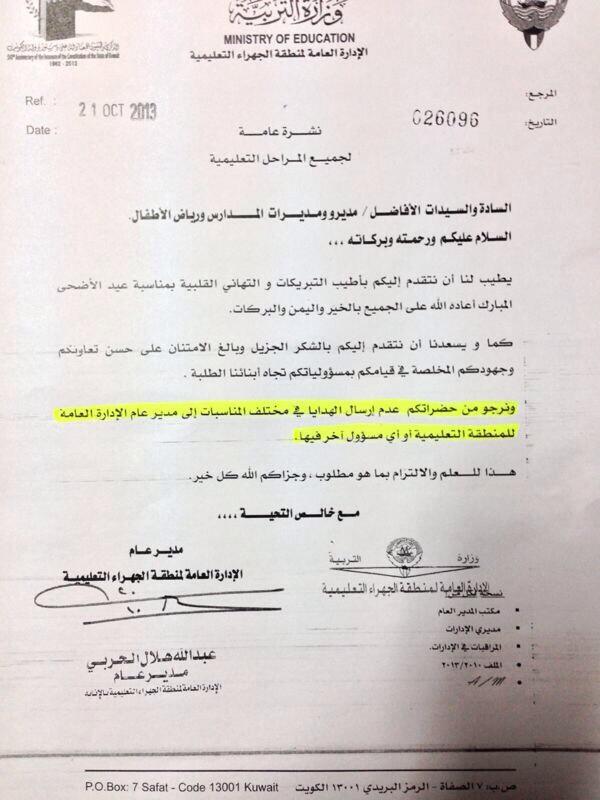 معلم نت خلك في البيت No Twitter نشرة عامة مدير عام منطقة الجهراء التعليمية عبدالله الحربي يطلب عدم إرسال الهدايا لأي مسؤول في المنطقة التعليمية Http T Co Akt2m5pyav