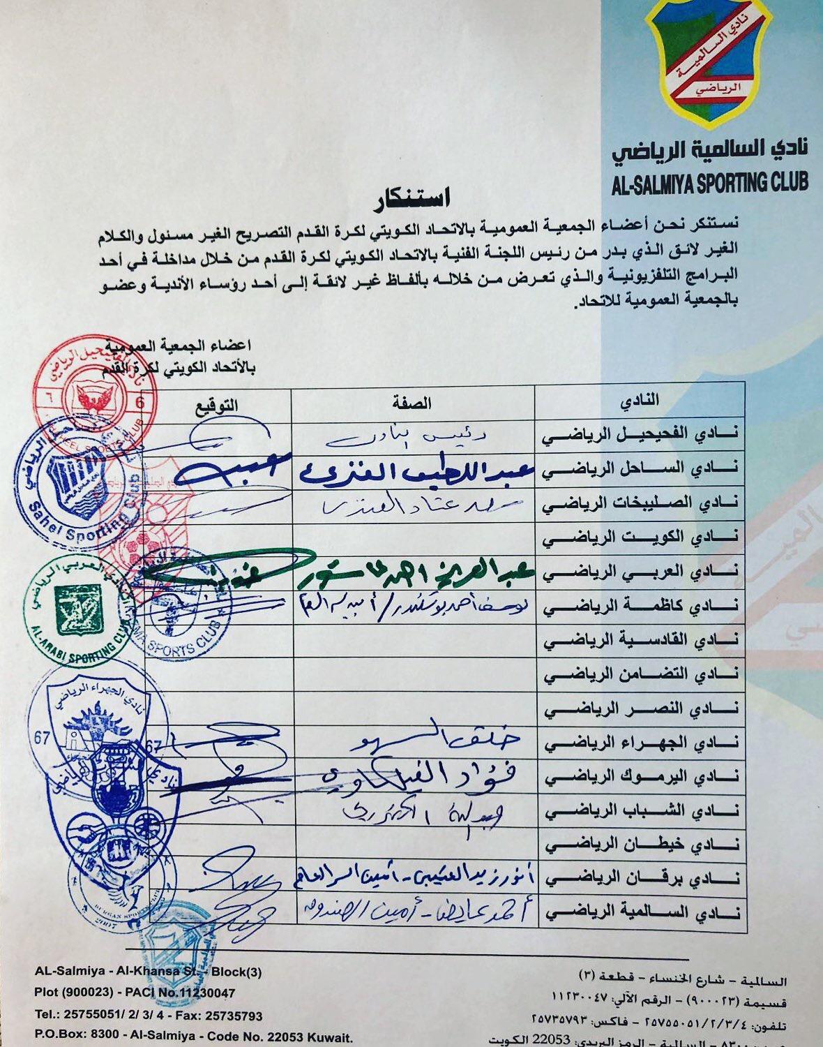 القادسية الكويتي Ar Twitter بيان أستنكار من عشر أندية ضد رئيس اللجنة الفنية بـ الأتحاد الكويتي السيد علي الديحاني